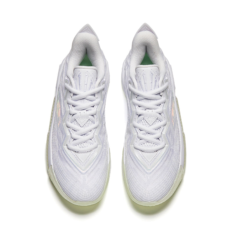 La "White Phantom" séduit dès le premier regard par sa sobriété élégante et son aura unique. Avec sa robe blanche immaculée, elle incarne la pureté, la fluidité et la légèreté. Inspirée de la lune et de son mystère, cette version illustre parfaitement la philosophie d’ANTA : allier performance technique et identité forte. Comme un papillon traversant le tumulte, cette paire symbolise la capacité à rester fluide, précis et insaisissable sur le parquet.
