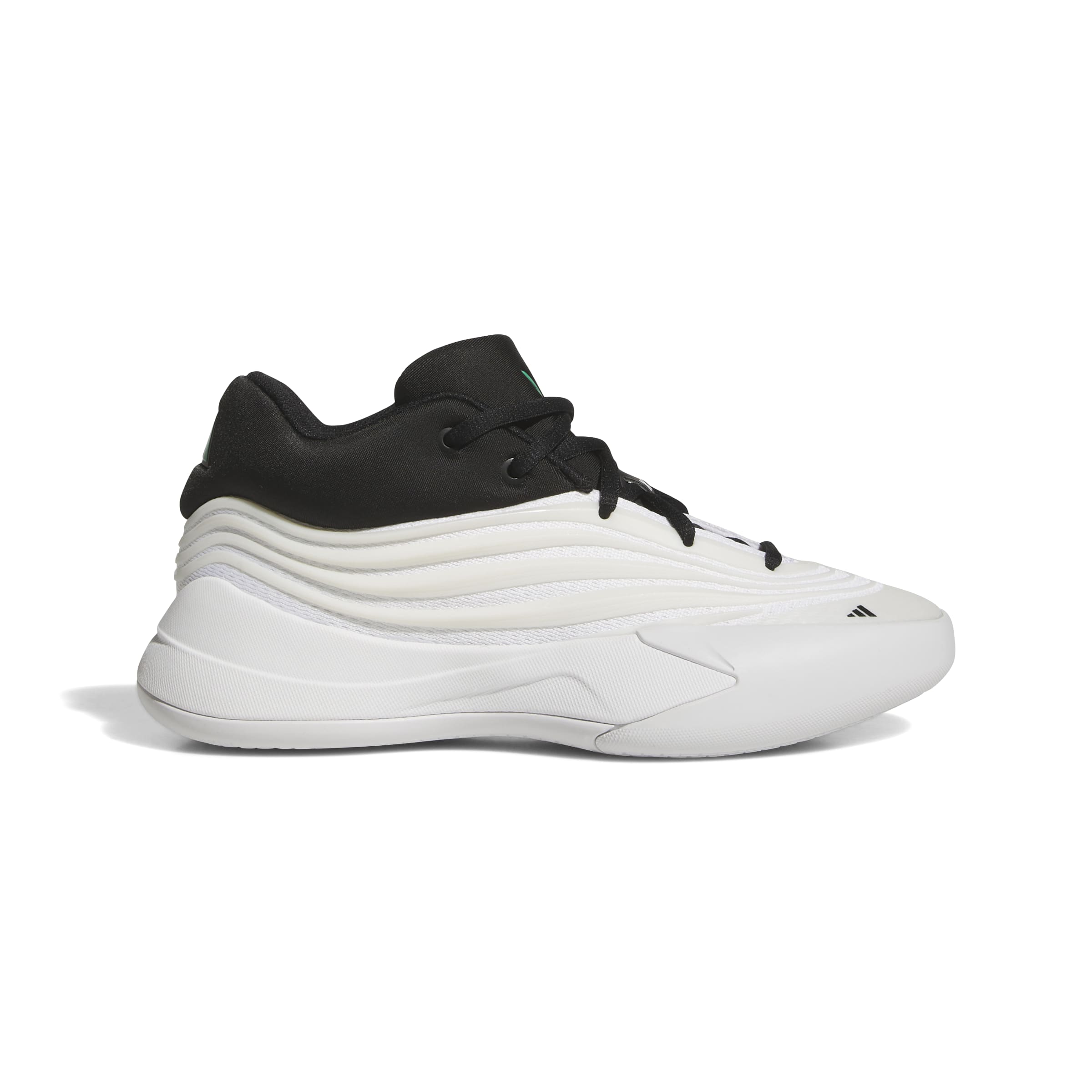 Ce modèle présente un coloris « Zero Metallic/Core Black/Court Green ». Il revisite le style « Stormtrooper » avec une base blanche métallisée, des touches de noir et des accents verts. Le logo Dame et la bride arrière apportent du contraste. Le résultat ? Une chaussure moderne, épurée et dynamique, idéale sur le terrain comme à la récré.