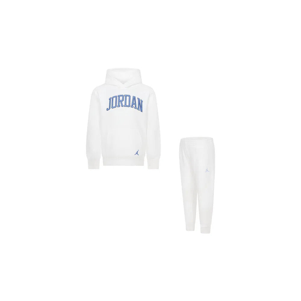 Votre enfant pourra se montrer sous son meilleur jour dans cet ensemble 2 pièces en molleton coton/poly qui est doux et agréable au toucher. Le sweat à capuche est orné d'un logo et sa coupe ample permet de le superposer facilement. Le pantalon assorti est doté d'une ceinture extensible pour un ajustement confortable et les jambes fuselées avec des poignets côtelés offrent une sensation de confort et de sécurité tout en montrant leurs Jordans.