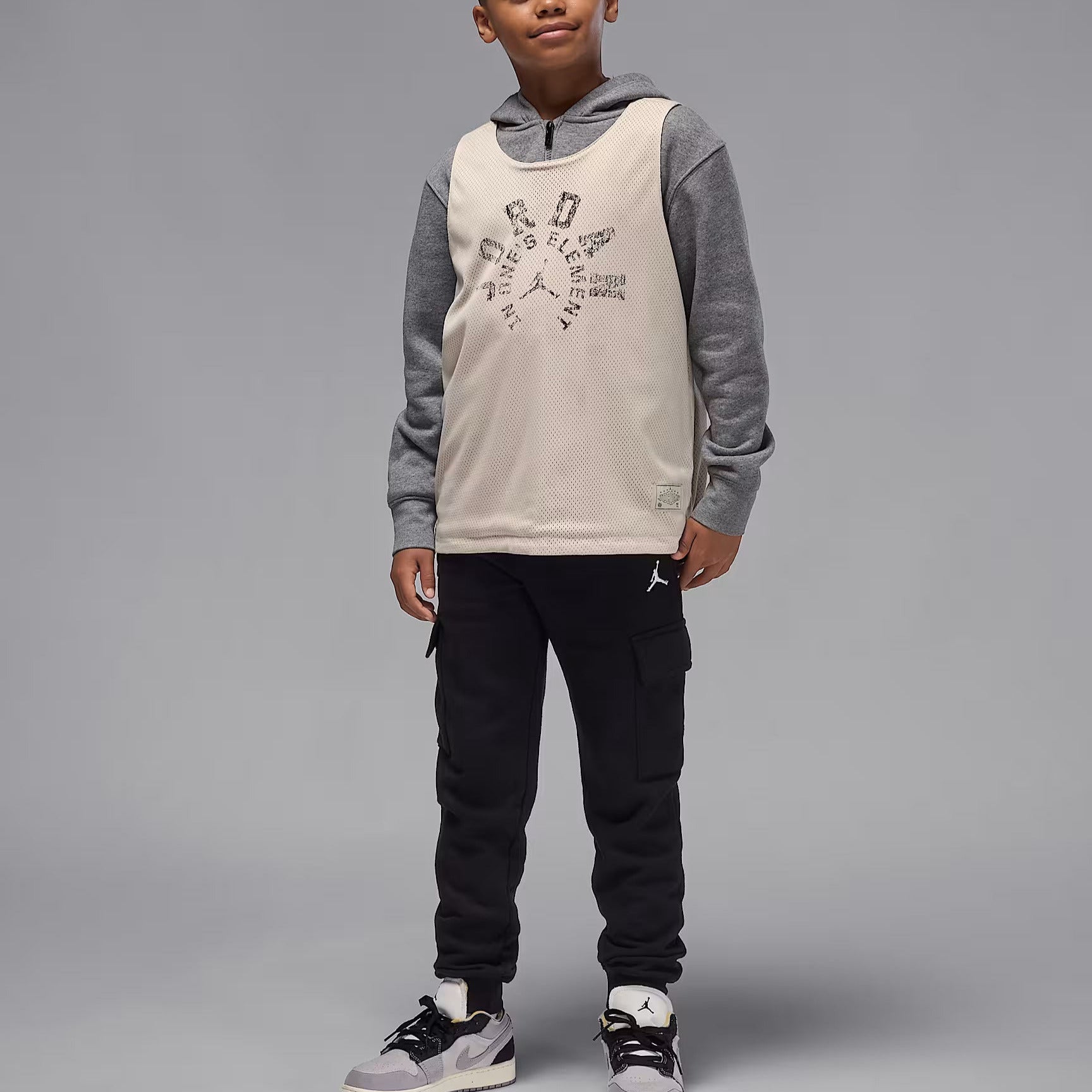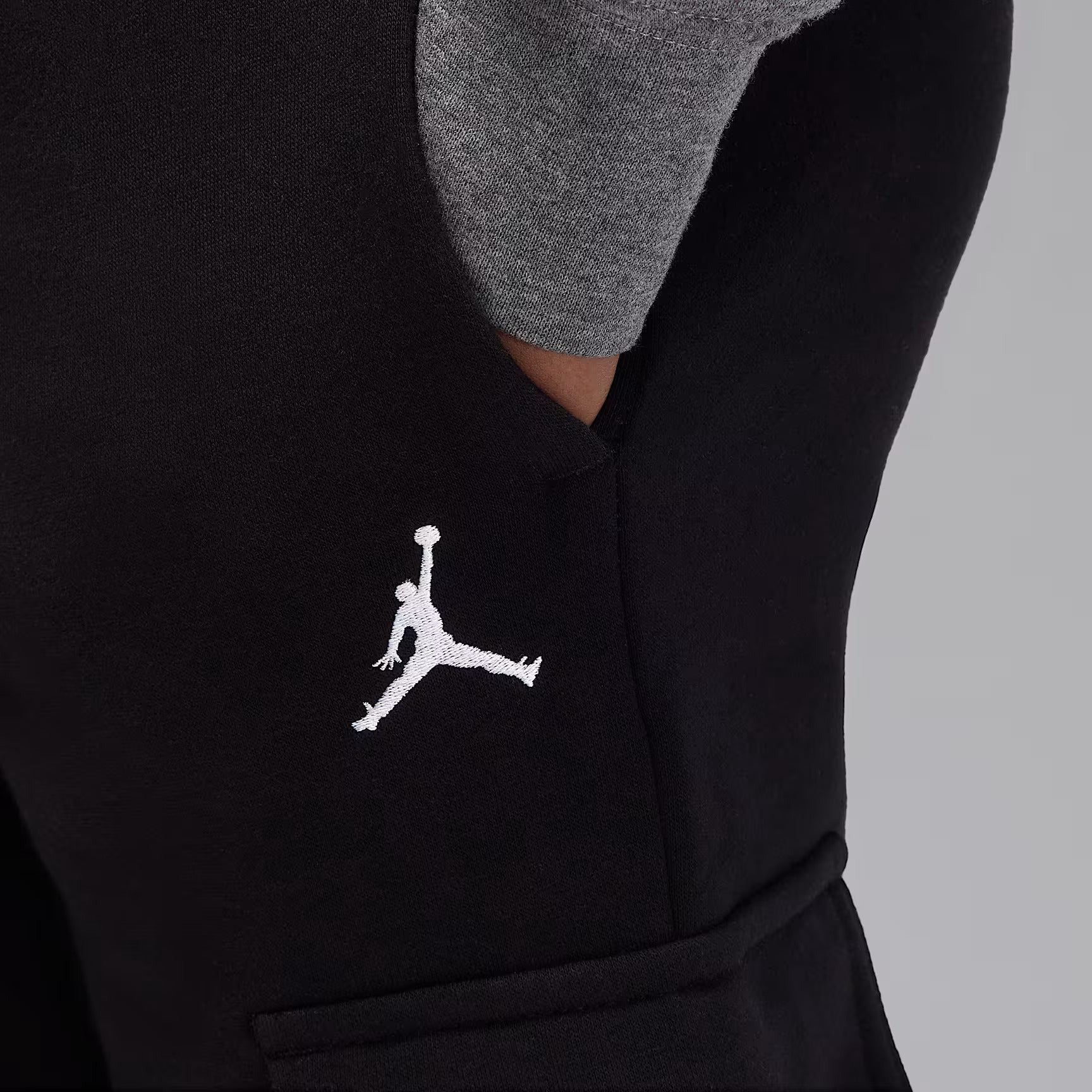 Fabriqué à partir d'un mélange de coton doux et de polyester, il assure une sensation agréable sur la peau tout au long de la journée, que ce soit à l'école, lors de sorties entre amis ou pendant ses moments de détente. Le pantalon est équipé d'une taille élastique qui garantit un ajustement confortable et pratique, tout en ajoutant une touche sportive. Le logo Jumpman, discrètement brodé, rappelle l'authenticité et le style emblématique de la marque Jordan.