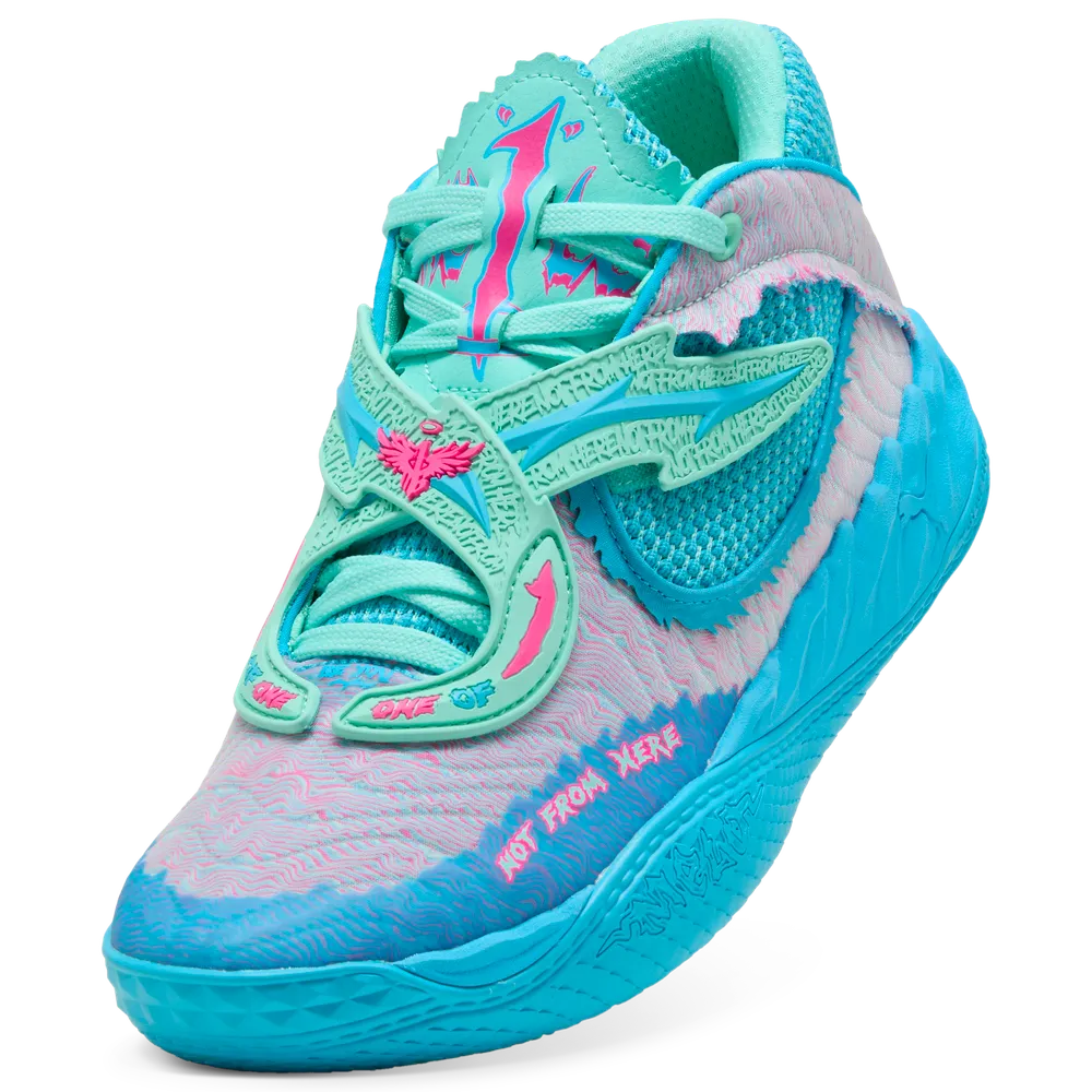 Avec son logo emblématique “1 of 1”, la MB.05 affirme le caractère inimitable de LaMelo Ball et s’impose comme un must-have pour les fans de performance et de culture urbaine.