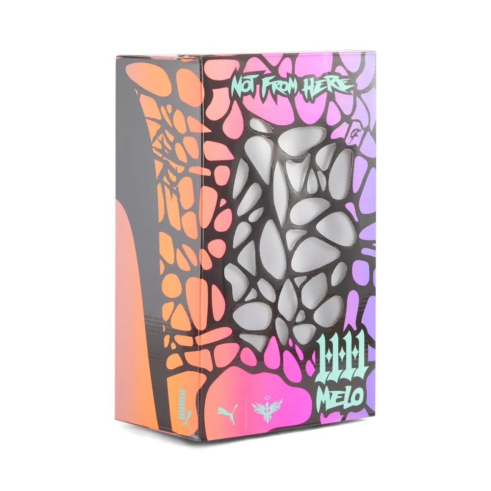 Chaque paire est un hommage à l’esprit libre de Melo : motifs abstraits, couleurs explosives et détails cachés, dont des messages inspirants pensés par le joueur lui-même, viennent rappeler à chaque basketteur de rester fidèle à ce qu’il est. Sur le talon, l'inscription iconique « Not From Here » marque cette volonté de repousser les limites du style comme du jeu.
