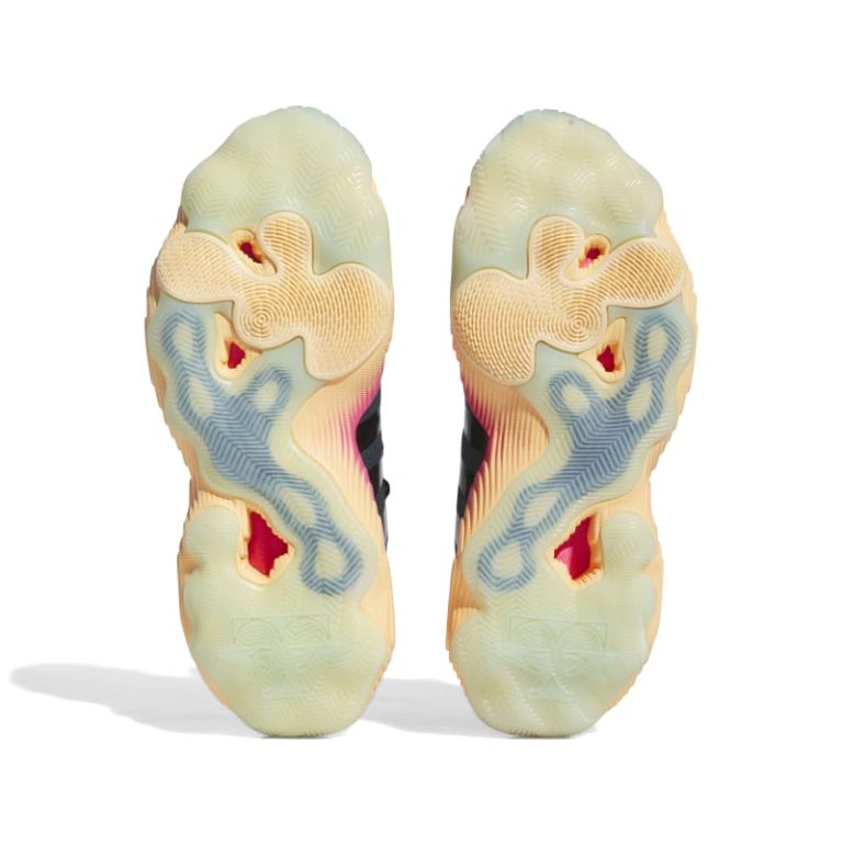 Ensuite, la semelle intermédiaire légère, dotée de la technologie de pointe d'Adidas. Permet aux joueurs qui portent ces chaussures d'effectuer des mouvements explosifs, même à pleine vitesse. Elle offre un amorti réactif, essentiel pour les sauts puissants et les atterrissages en douceur. Cette caractéristique est cruciale pour les joueurs qui doivent maintenir un niveau de performance élevé tout au long du match.