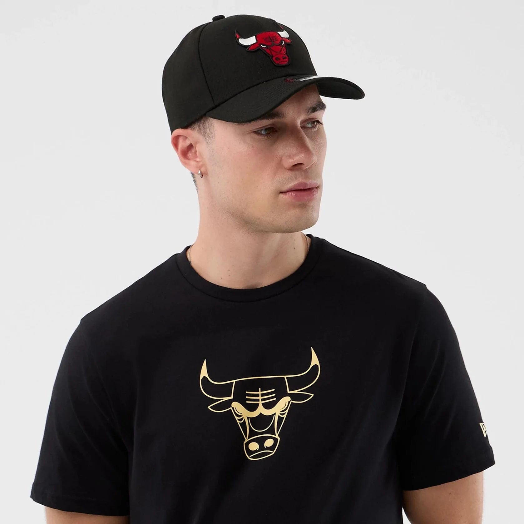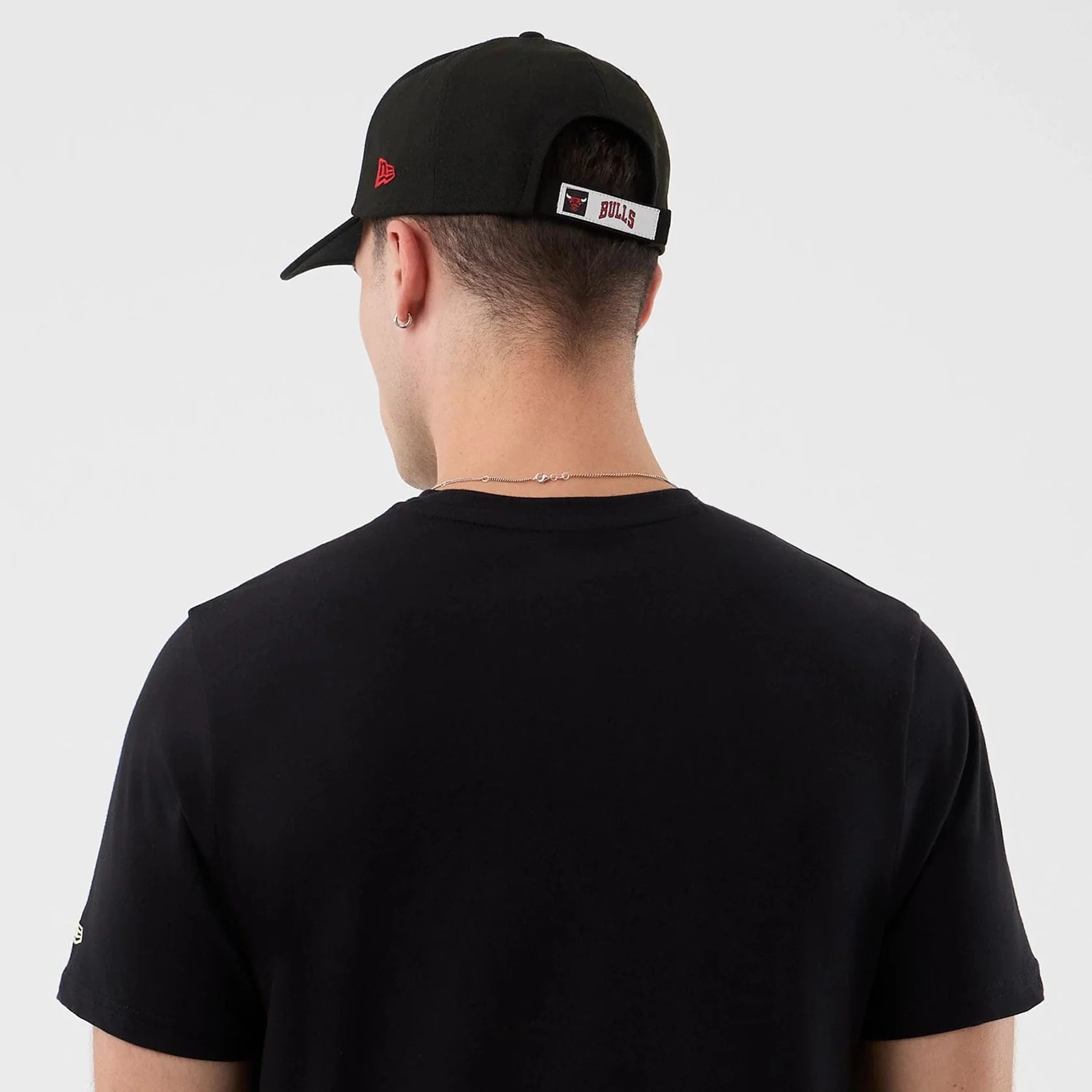 Le design met à l’honneur le logo emblématique des Chicago Bulls sur la poitrine : la tête du taureau rouge, symbole de force et d’énergie, immédiatement reconnaissable par tous les amateurs de NBA. Le logo officiel de la NBA et le logo New Era brodé sur la manche viennent compléter le look, apportant une touche authentique et premium.